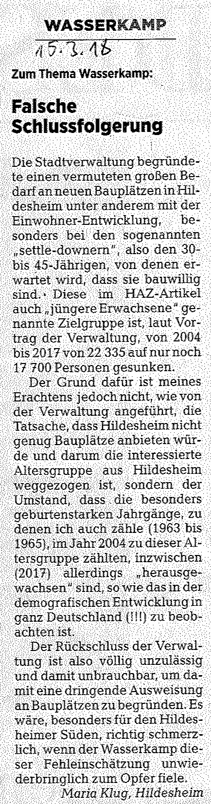 Leserbrief in der Hildesheimer Allgemeinen vom 15.3.2018