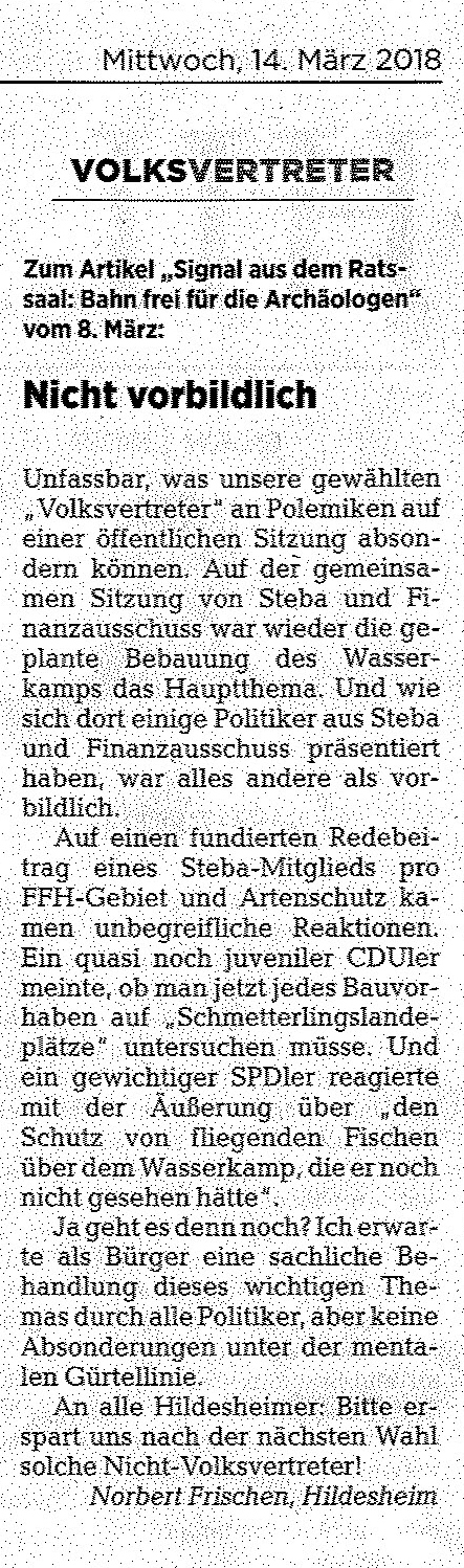Leserbrief in der Hildesheimer Allgemeinen vom 14.3.2018