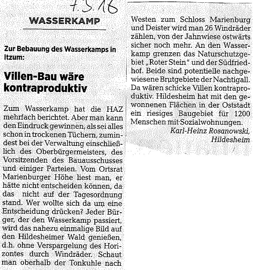 Und noch mehr Leserbriefe in der Hildesheimer Allgemeinen