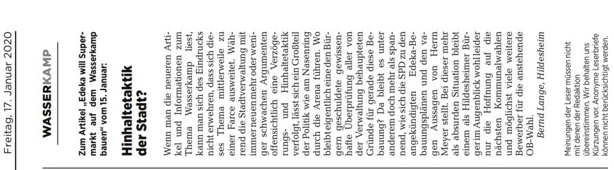 Quelle Hildesheimer Allgemeine Zeitung 17 Januar 2020